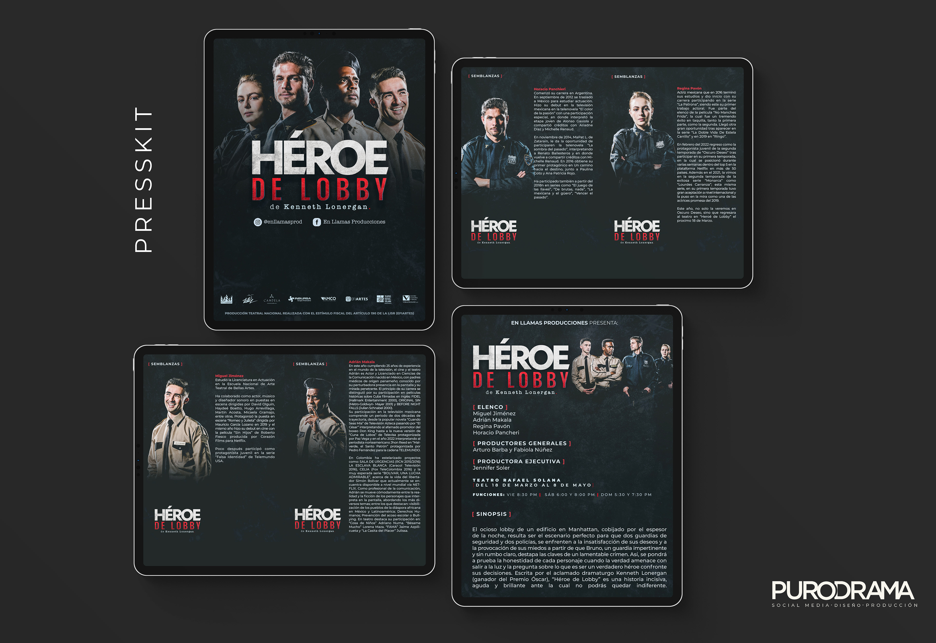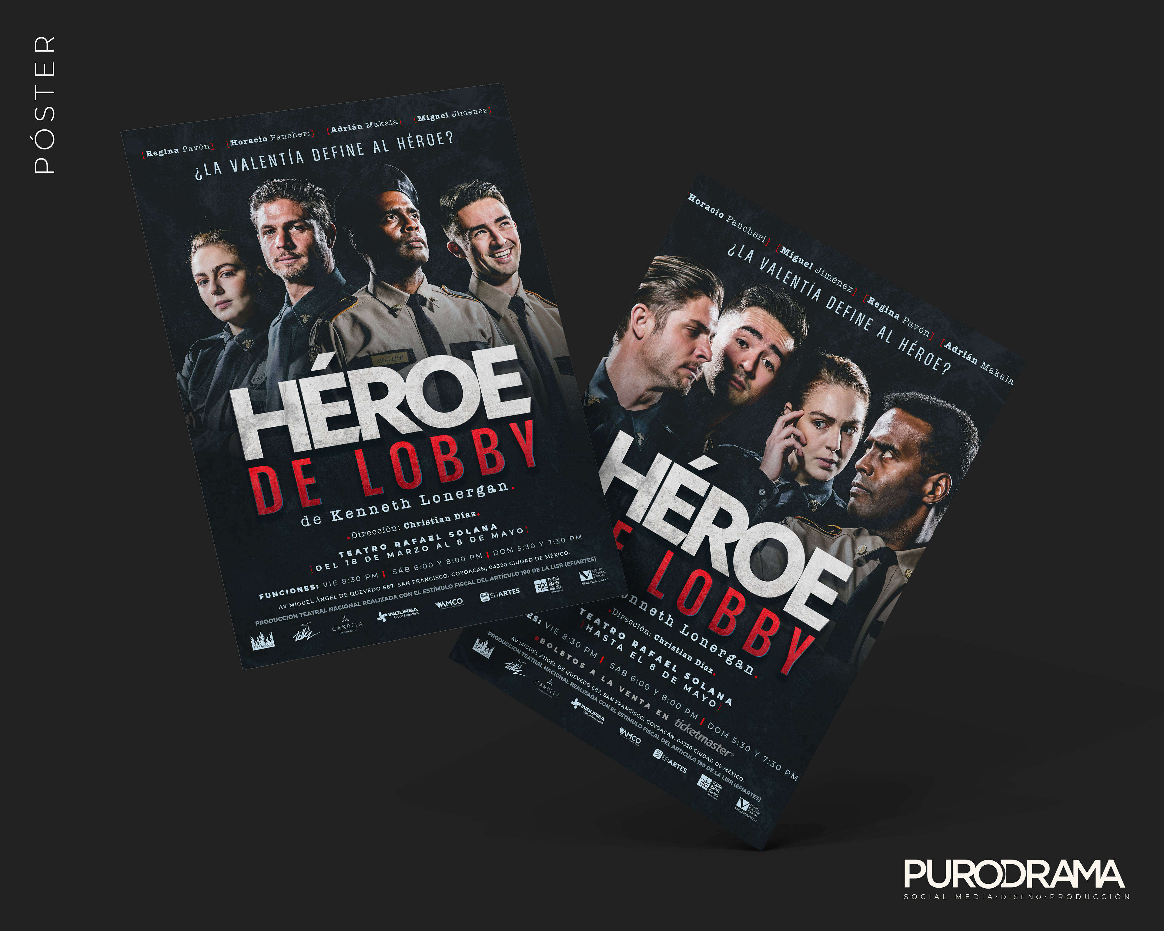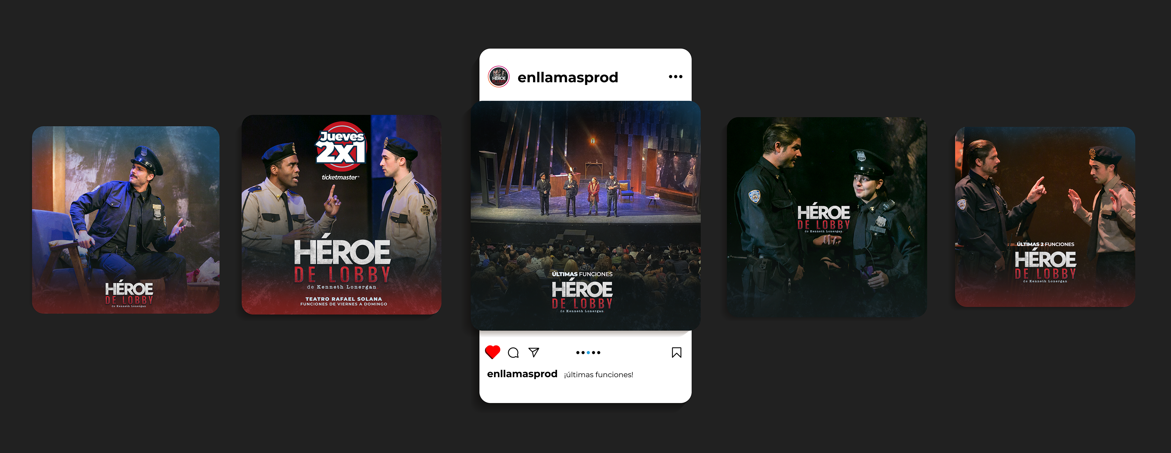 Diseño gráfico y redes sociales para la obra de teatro Héroe de Lobby. Producción de En Llamas Producciones. Fotografía: Einar Gonzalez. Producción Ejecutiva: Jennifer Soler Teatro Rafael Solana.