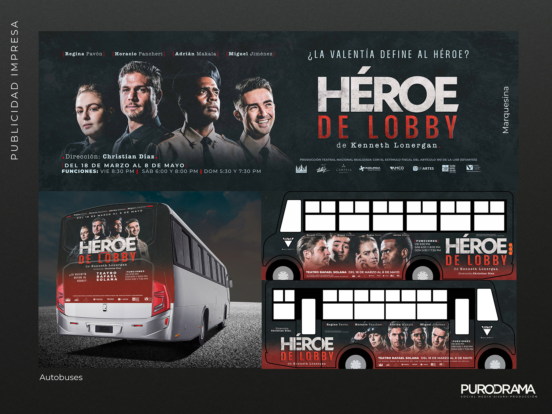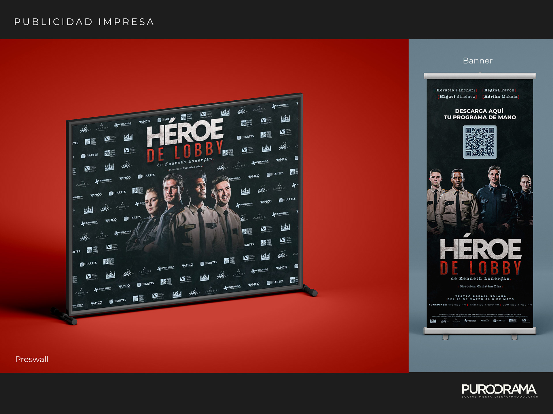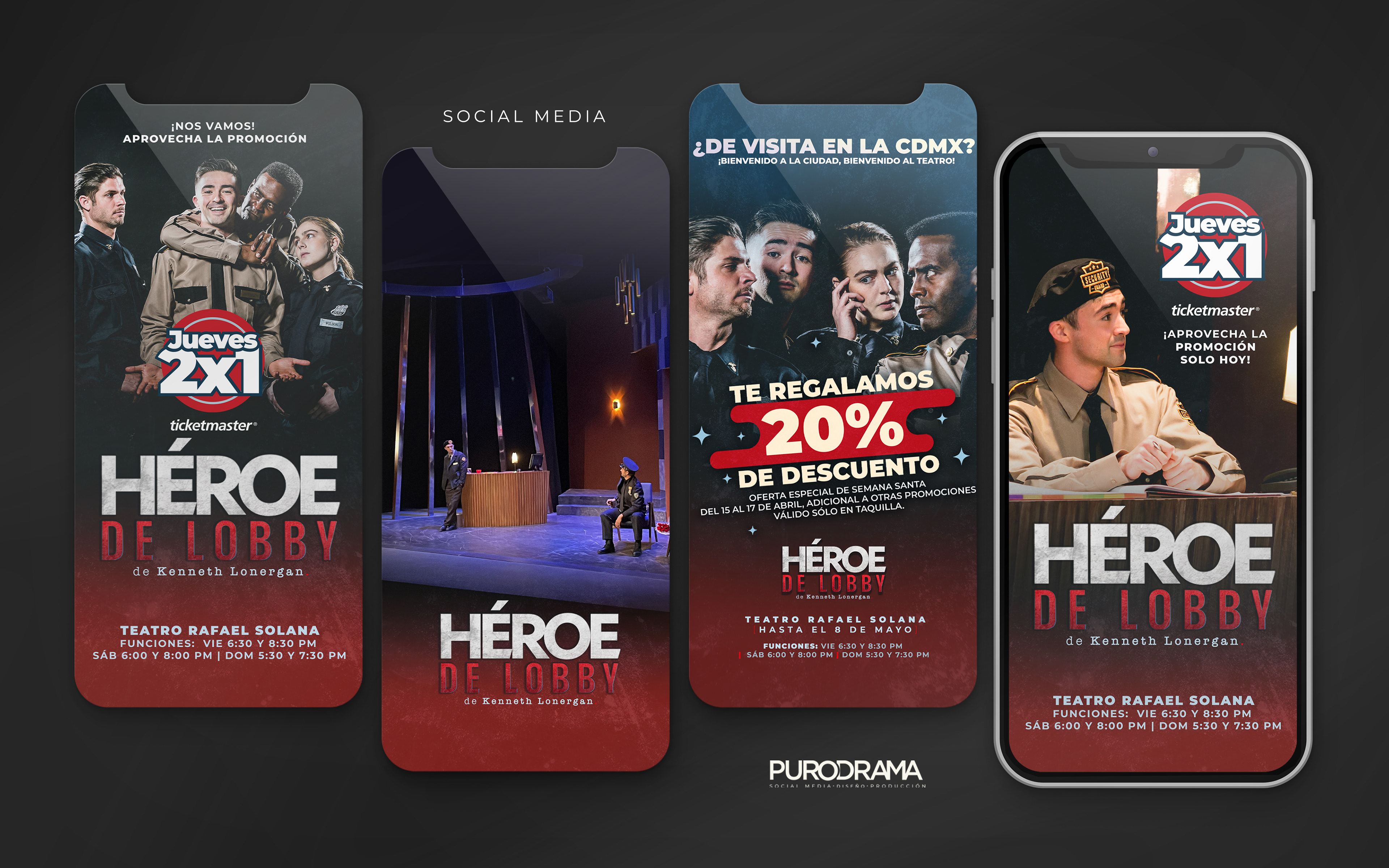 Diseño gráfico y redes sociales para la obra de teatro Héroe de Lobby. Producción de En Llamas Producciones. Fotografía: Einar Gonzalez. Producción Ejecutiva: Jennifer Soler Teatro Rafael Solana.