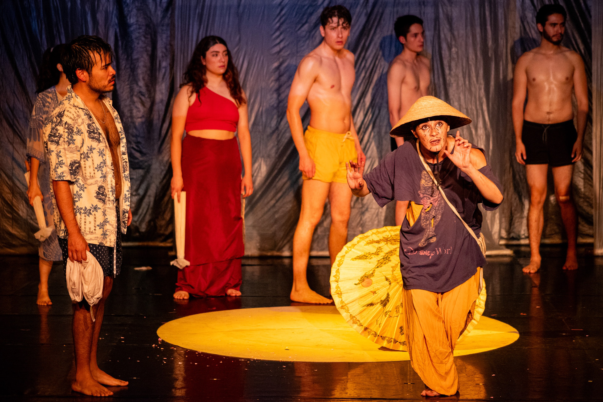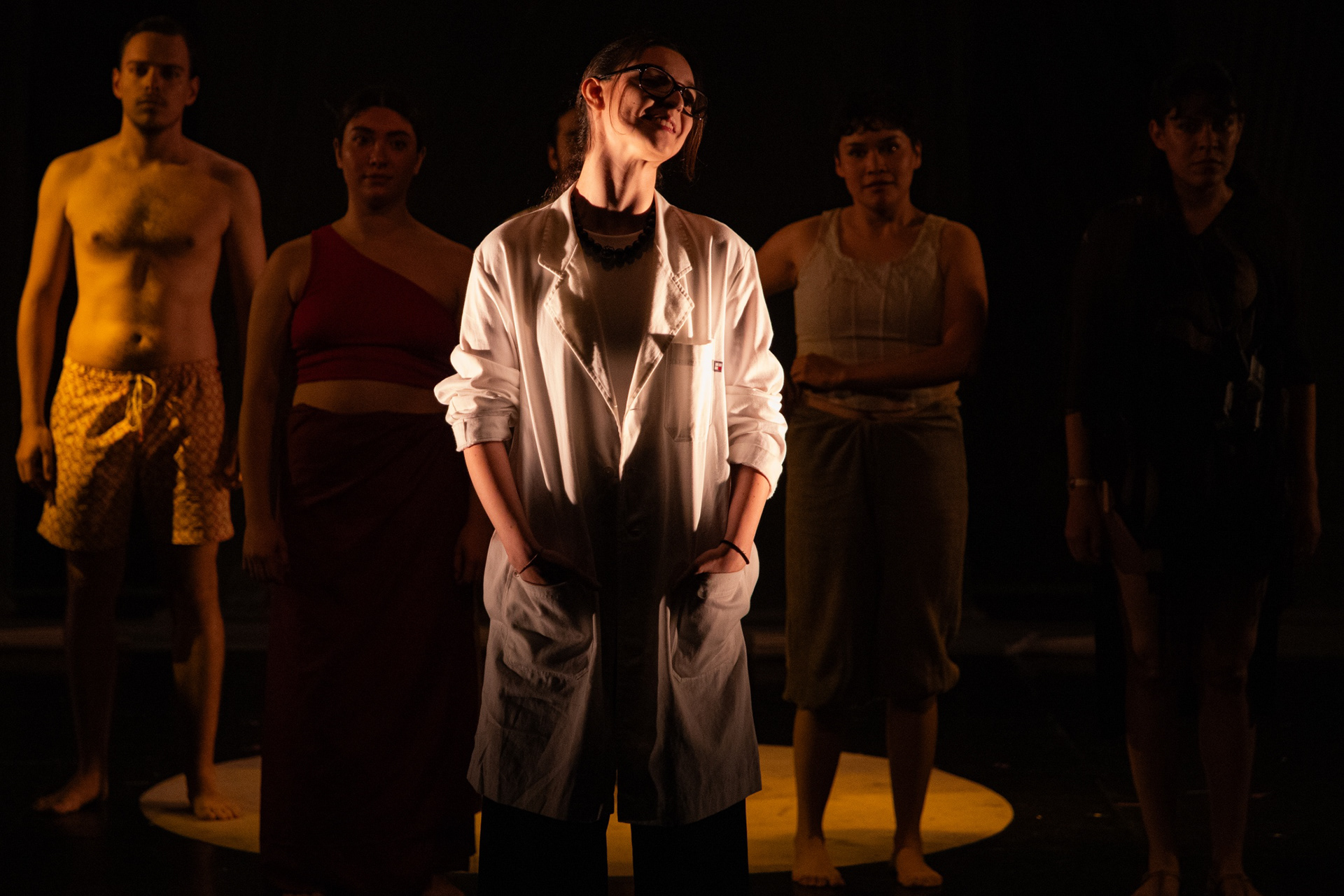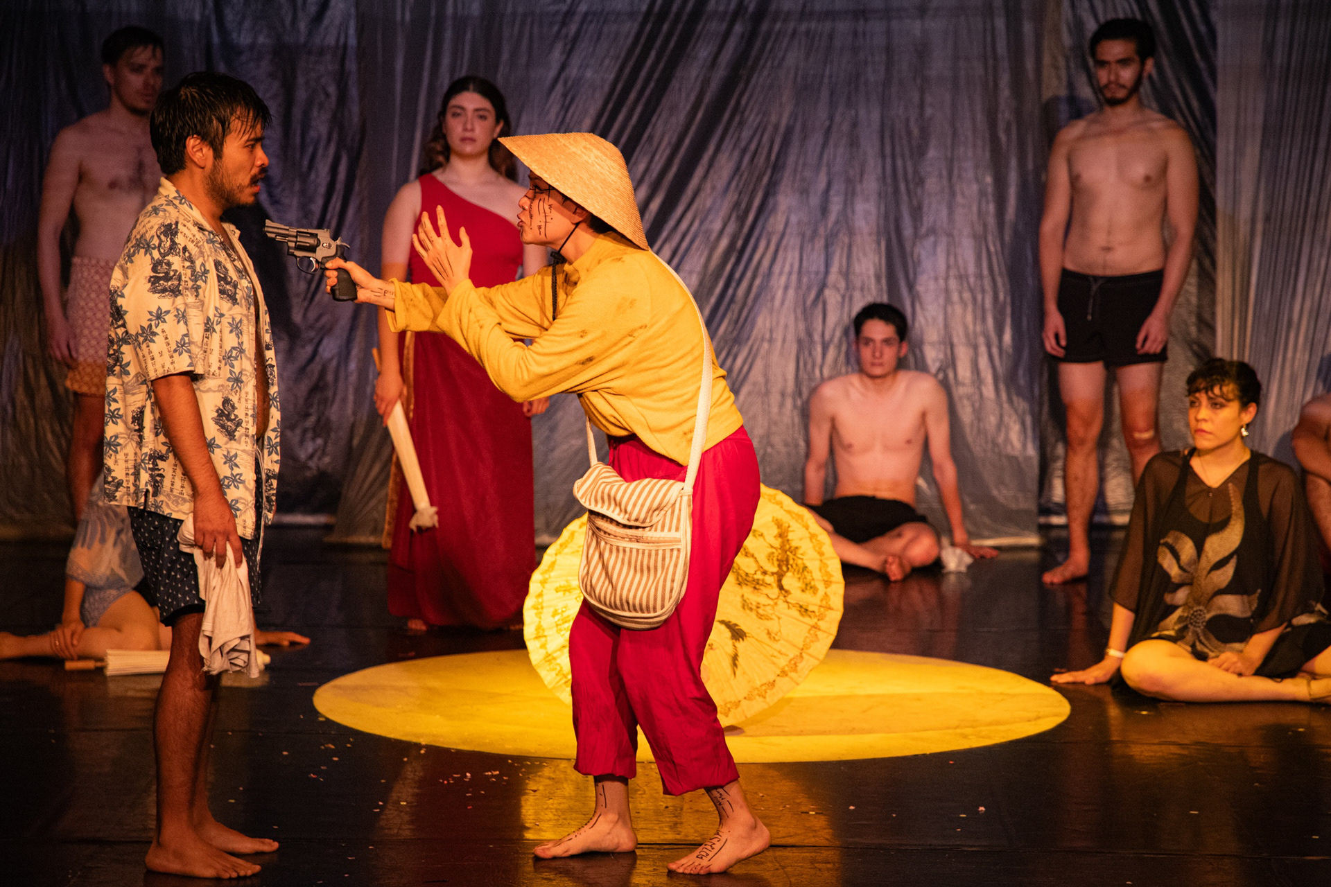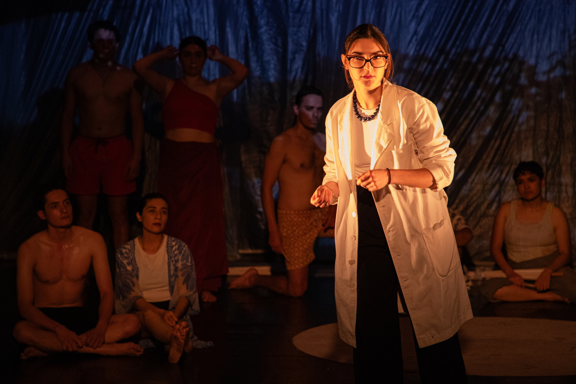 Fotografía de escena para la obra "Llevados por la cresta de una ola" de David Yee. Dirección: Clarissa Malheiros Fotografía: Arturo Torres Escuela Libre de Artes Escénicas 2024