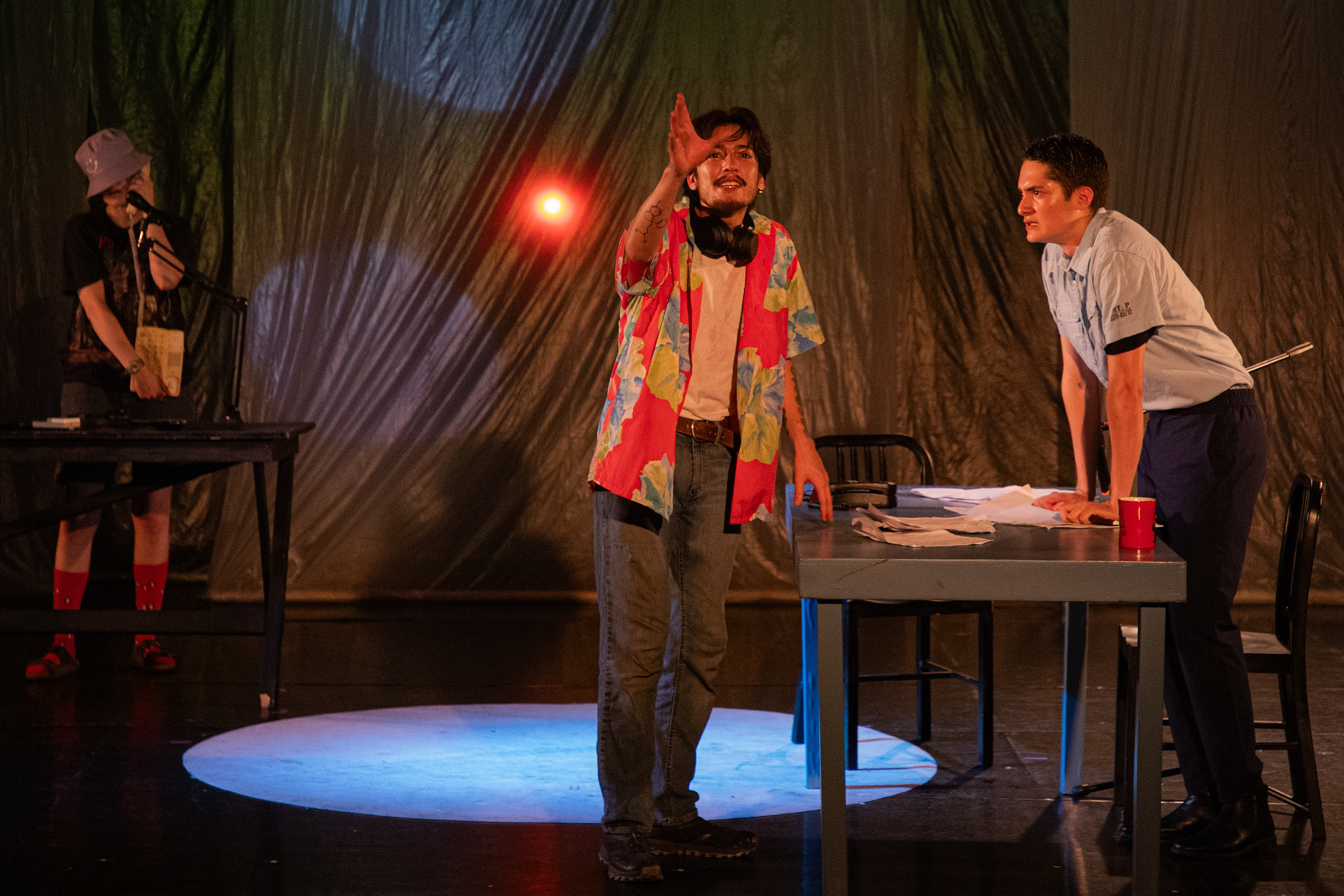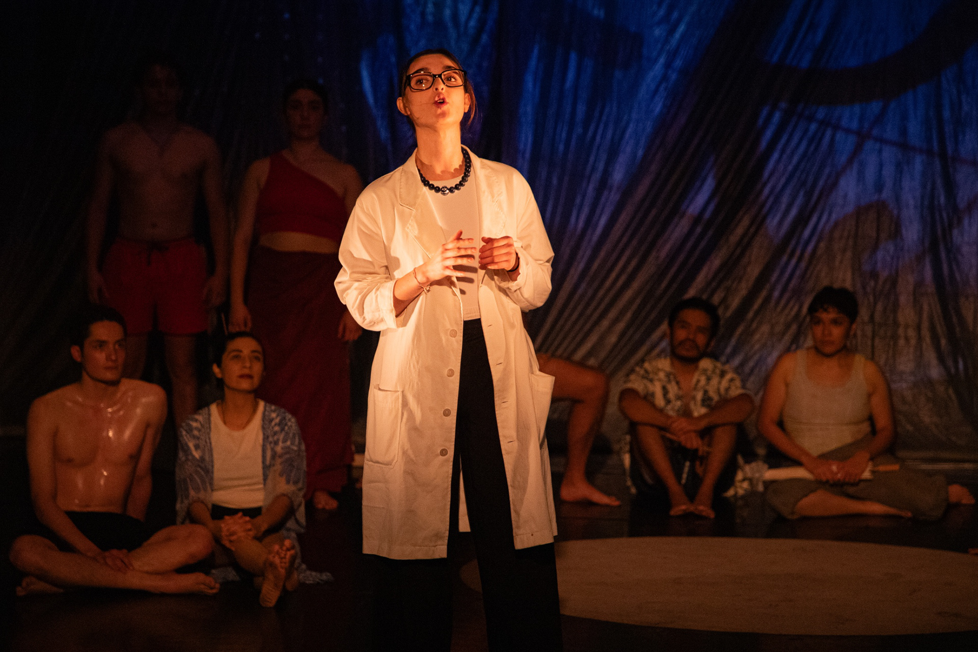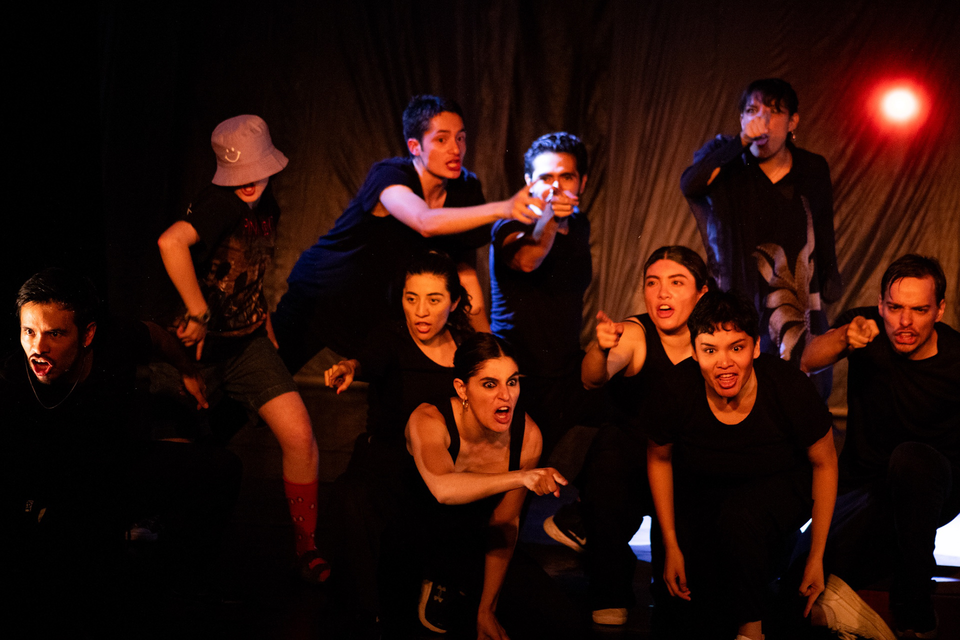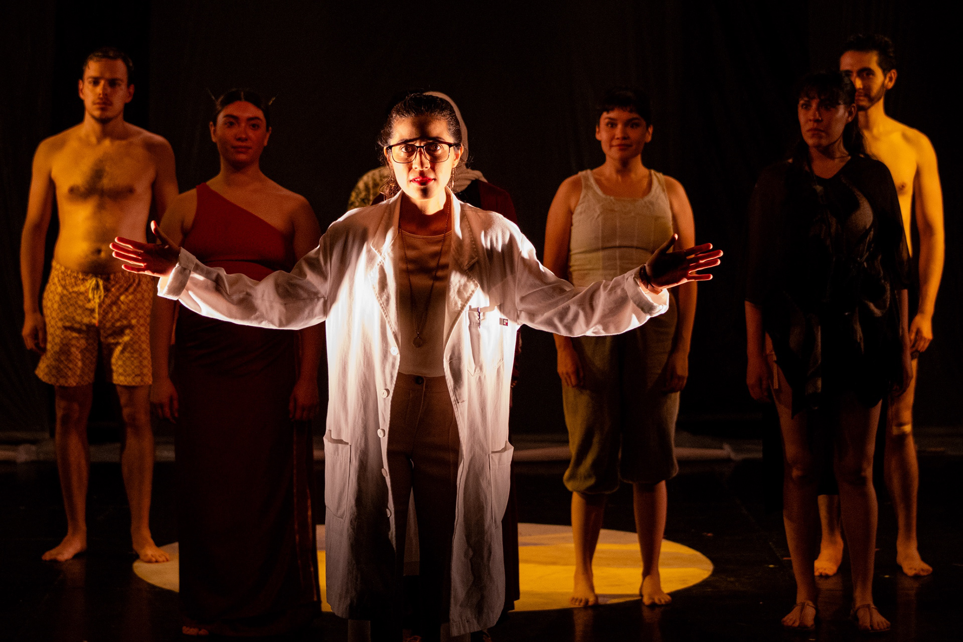 Fotografía de escena para la obra "Llevados por la cresta de una ola" de David Yee. Dirección: Clarissa Malheiros Fotografía: Arturo Torres Escuela Libre de Artes Escénicas 2024